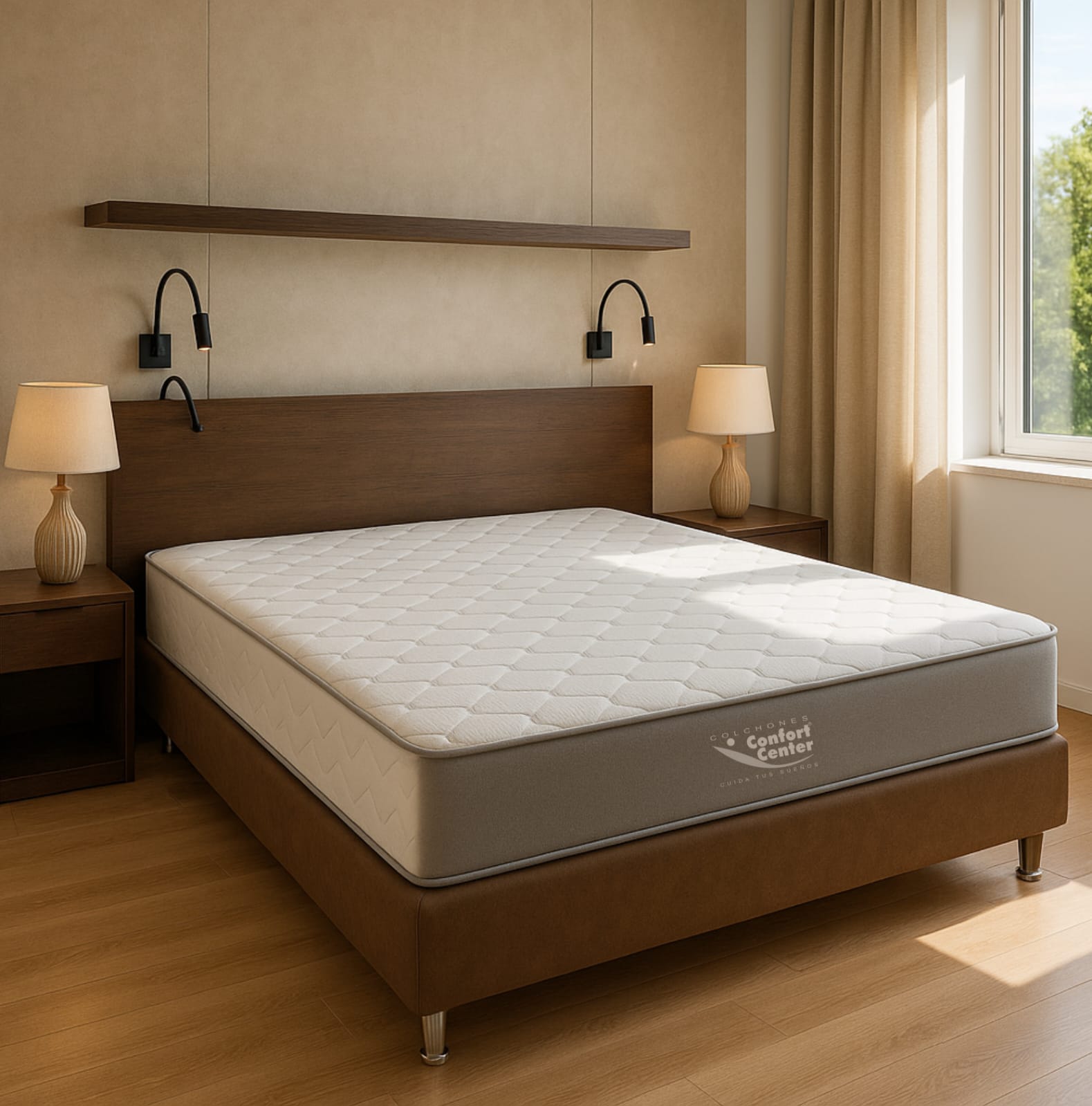 Colchón de firmeza media-firme de 28 cm de alto con 2+/- cm de tolerancia, doble cara, duradero y con soporte confiable. Está elaborado con resortes Bonell, grantizando un soporte continuo que favorece la correcta alineación del cuerpo durante la noche. En su interior, contiene una combinación de fibras de alta densidad con una capa de confort media ofrece un balance entre firmeza y adaptabilidad. Su tapa está elaborada en tela Jacquard acolchada blanca, reconocida por su frescura, resistencia y textura agradable al tacto, lo que permite usarlo por ambos lados, aumentando su vida útil.