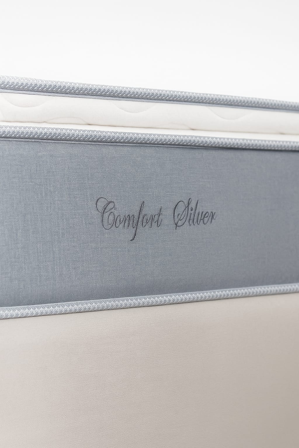 Colchón de firmeza media de 28 cm de alto con 2+/- cm de tolerancia. Su resorte Bonell proporciona soporte uniforme y resistencia al uso prolongado, mientras que el interior está reforzado con fibra de alta densidad y una capa adicional de soporte intermedio que suaviza el contacto sin perder estructura. La superficie cuenta con un pillow integrado tela Jacquard blanca acolchada, que mejora la transpirabilidad y el confort térmico. Su banda lateral gris hielo aporta resistencia y un toque moderno a este colchón pensado para el uso diario.